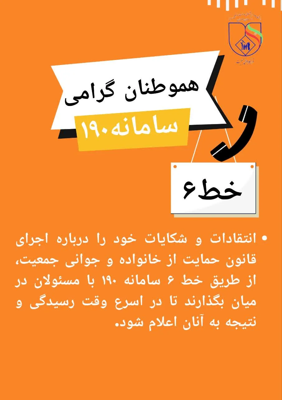 سامانه 190/ بیان انتقادات و پیشنهادات در خصوص قانون جوانی جمعیت