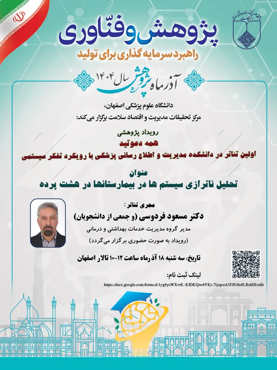 مکان (حضوری): 🏛️ تالار اصفهان، دانشکده مدیریت و اطلاع رسانی پزشکی، دانشگاه علوم پزشکی اصفهان